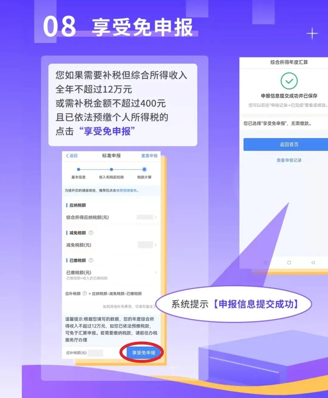2021年度个人所得税综合所得年度汇算即将截止,您办理了吗? 6月30日,2021年度个人所得税综合所得年度汇算即将截止,您办理了吗?还没办理的纳税人要尽快哦~ 一、哪些人需要办理年度汇算? 二、如何办理个税年度汇算 三、如何查看个税年度汇算进度 如果存在以下情形之一,可能导致退税审核不通过或者退税失败哦! 四、不如实办理年度汇算申报 纳税人如经税务机关提醒拒不依法如实办理年度汇算的,可能面临税务行政处罚,并计入个人纳税信用档案。根据《税收征管法》有关规定,纳税人采取隐瞒收入、编造虚假扣除等手段逃避缴税的,由税务机关追缴其不缴或者少缴的税款、滞纳金,并处不缴或者少缴的税款50%以上5倍以下的罚款,构成犯罪的,依法追究刑事责任 |